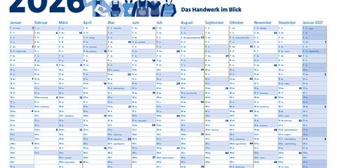 Viele Mitgliedsbetriebe schätzen den praktischen Wandkalender der Handwerkskammer. Neben der gedruckten Version bieten wir den Kalender auf gerne zum Download an.